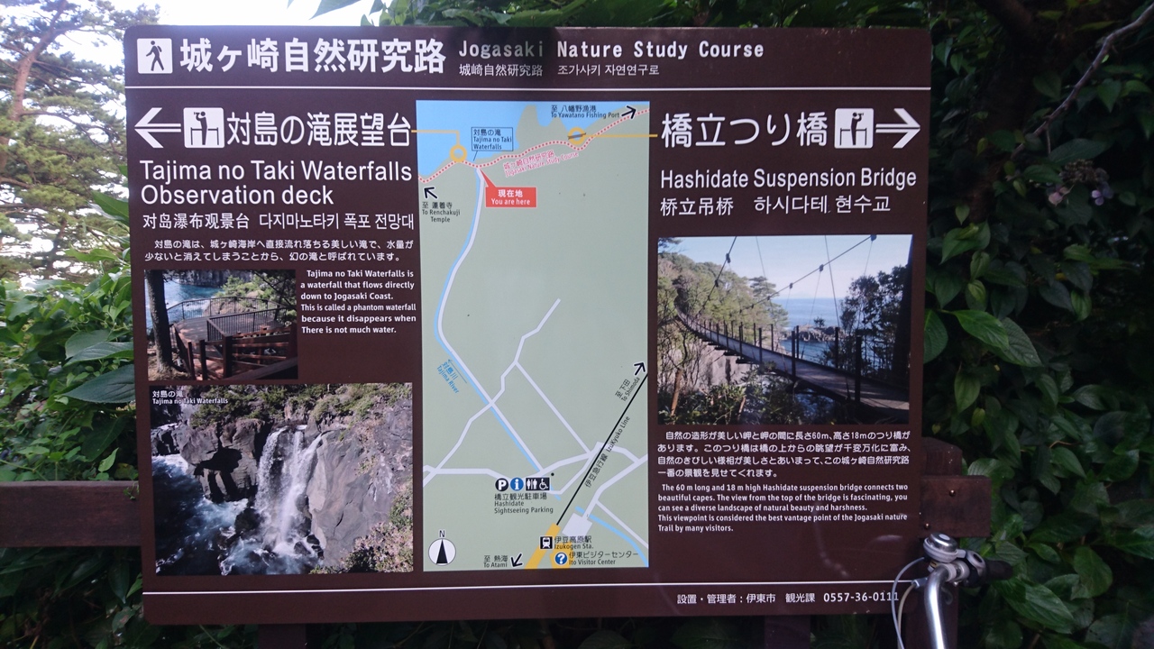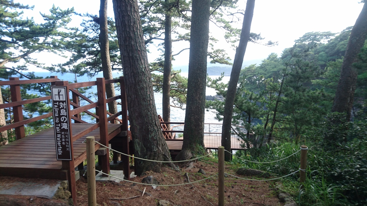 水や海が見えてきたら案内の看板があるので左の階段と坂を下ると人工的に作った展望台に到着。海の見張らしはよかったが、滝の水量が本当に少なかった。