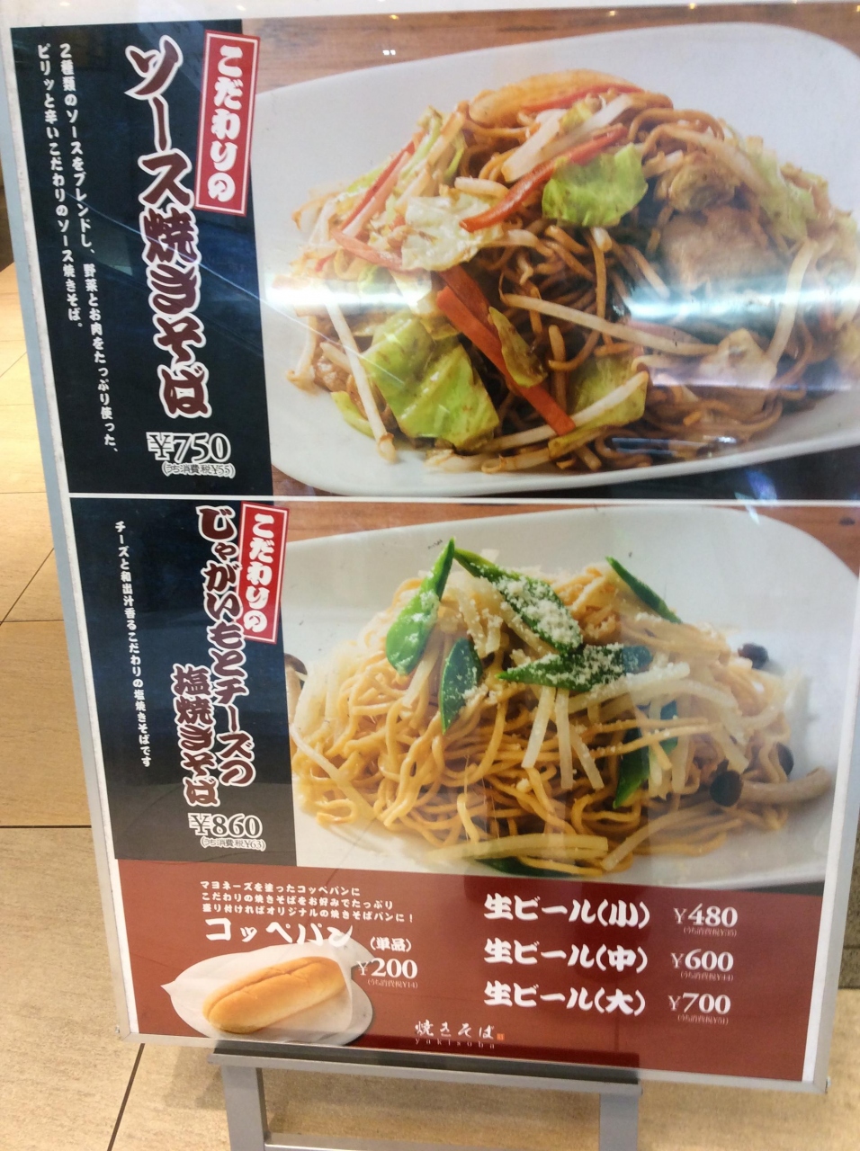 羽田空港第1ターミナル地下一階の東京シェフズキッチン(フードコート)の中にありました。入り口から向かって一番左側だったとと思います。以前は確かタコ焼きのお店だったような気がします。メニューは焼きそばとビール位ですが、コッペパンも売っていて、焼きそばパンにして食べられるのは良いアイディアだと思いました。