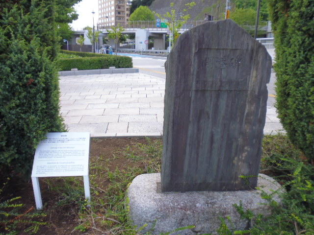 公園内はバラなどの花もきれいに手入れされていてきれいです。公園内のひっそりとしたところに開港の碑があるのだけれども、目立ちません。