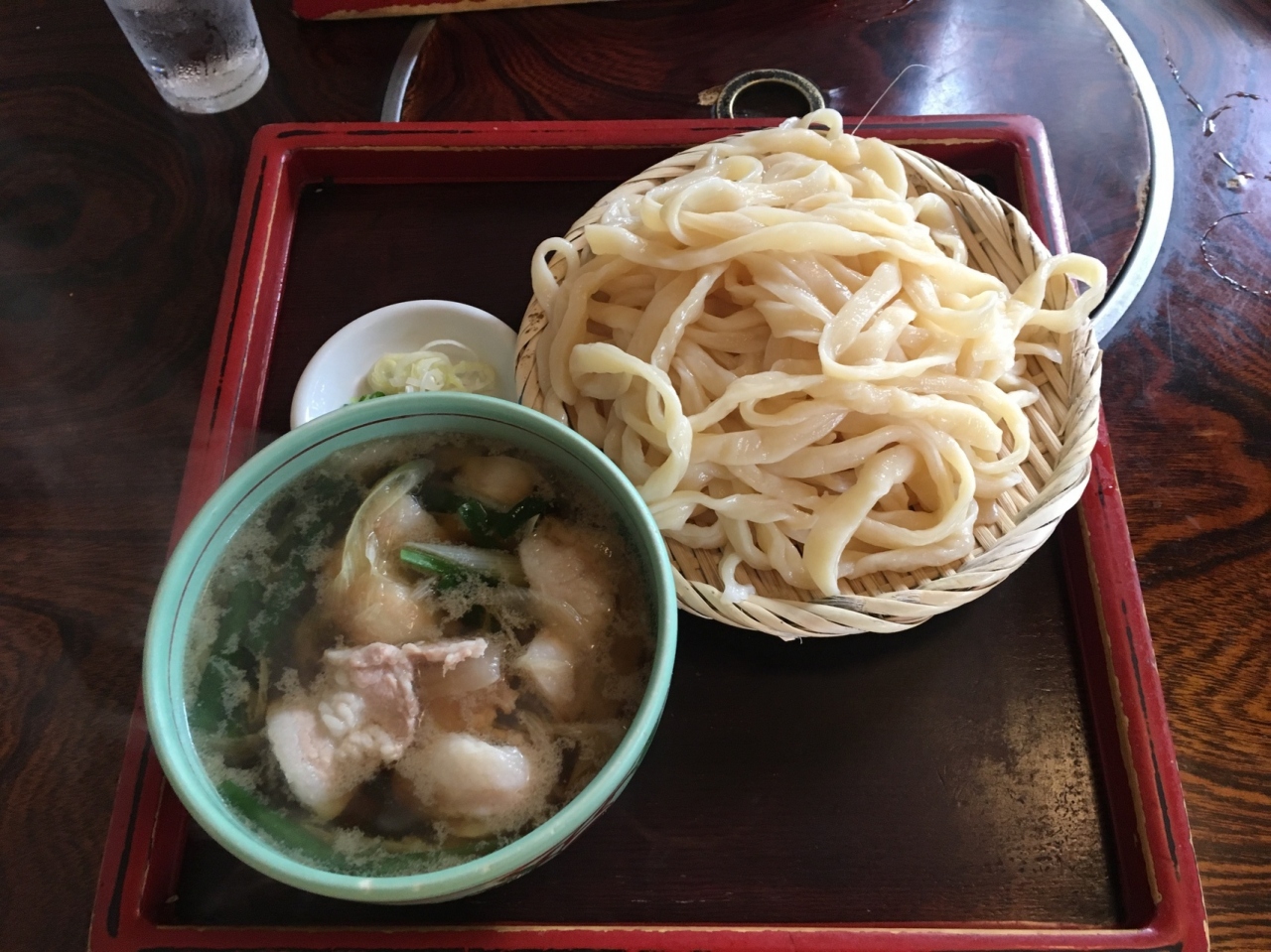 行こうとしていたお店がお休みだったので、予定を変更して食べに行きました。お店は国道17号線から少し入った所にあります。駐車場は広めでしたが、日曜日のお昼時に到着した際にはほぼ満車でなんとか1台でた所に止める事が出来ました。まあ見ていると出入りが結構あるようで、少し待てば止められる感じでした。食べたのは肉うどんつけ汁中盛りです。中盛りでもかなりボリュームがありました。次はカレーうどんを食べてみたいのですが、家族は太めの硬いうどんが余り好きではないので、次は厳しいかも。