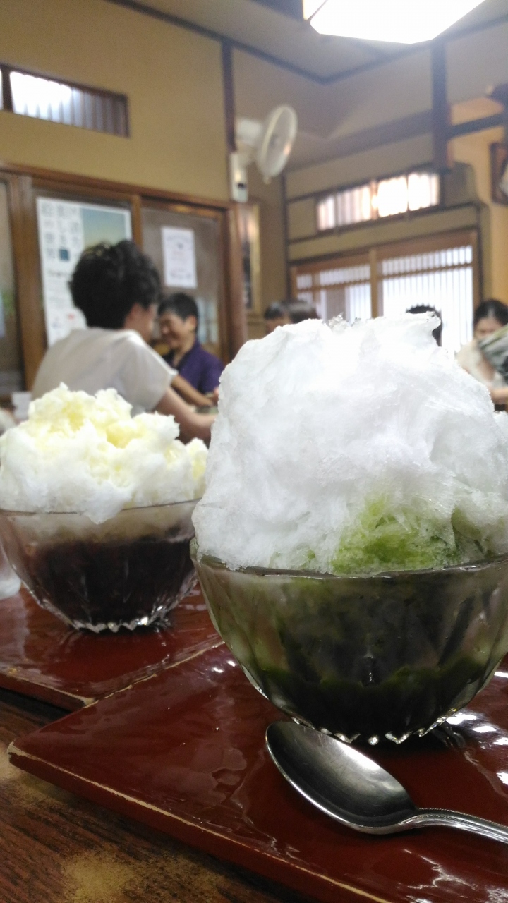 あんこが有名なので、冬ならお汁粉がいいかもしれない。かき氷は抹茶と小豆と白玉と、王道なものを注文。すぐ溶けちゃうので、急いで食べましょう。