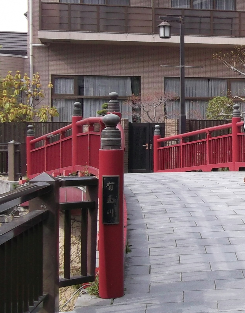 真っ赤な橋とねねの像