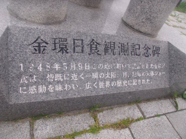 起登臼の方の日食観測記念碑は、日食の満ち欠けの様子が再現されているような体でしたが、解説も石碑の下部にちょっとあるだけで、何だか不親切に感じました。