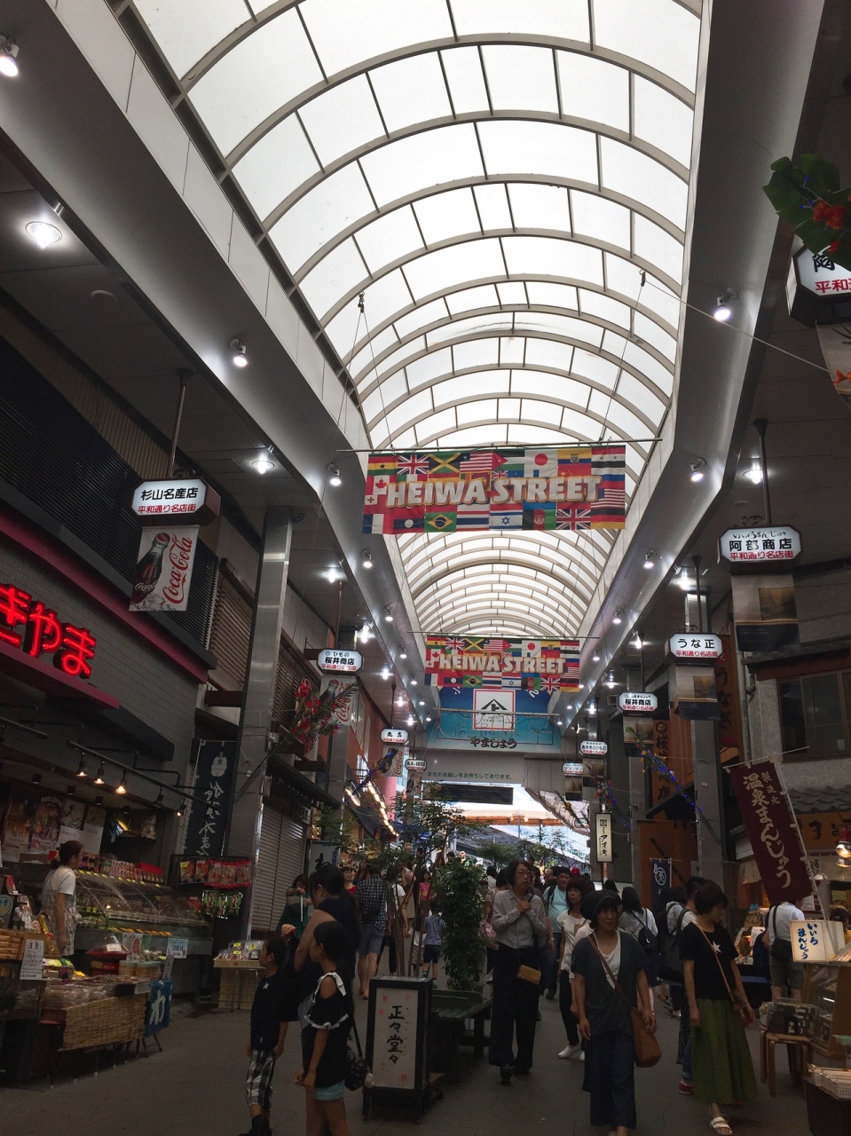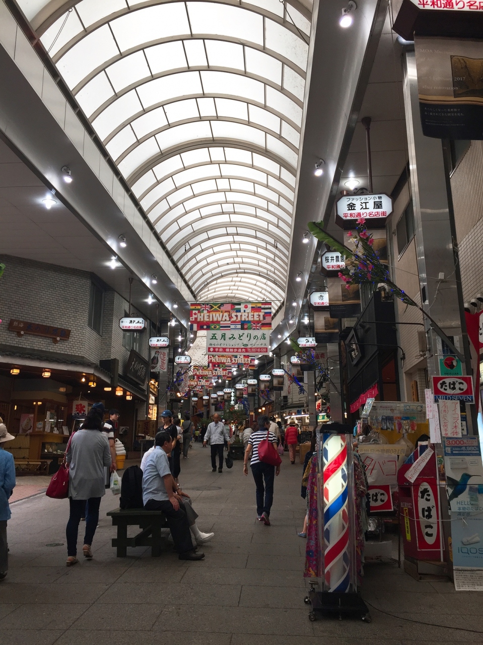 この商店街も、熱海駅の目の前から始まっている商店街で、昼間はとっても賑わっているのでお土産を買うのには困りません。 ただ、営業は夏休み中とかであっても夕方の5時過ぎには終了してしまい、夜はシャッター街です。 有名過ぎる観光地なので、夜もそれなりに賑わっているのを想像していたので意外でしたが、その分夜はホテルでゆっくり過ごせて良いかも。 商店街の入口にはコンビニがあるので、必要な物の買い物には夜でも困ることはありません。