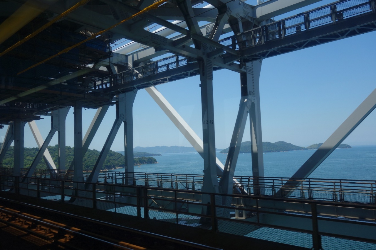 中国から四国の今治へ瀬戸大橋を渡って電車で進みました