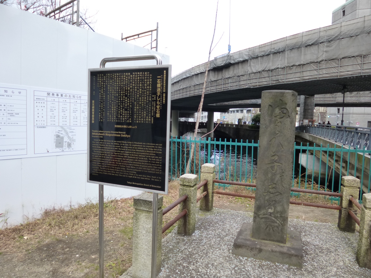 日本橋川にかかる一石橋。東京駅に近いほうの橋のたもとに、迷子しらせ石碑が建てられています、浅草寺の境内や両国橋のたもとにもあったそうですが、現在残っているのは、ここだけだそうです。近隣の開発工事が行われていましたが、実際のものを見るとやはり、感じらえるものが違うので、ずっと残してもらえると良いと思います。