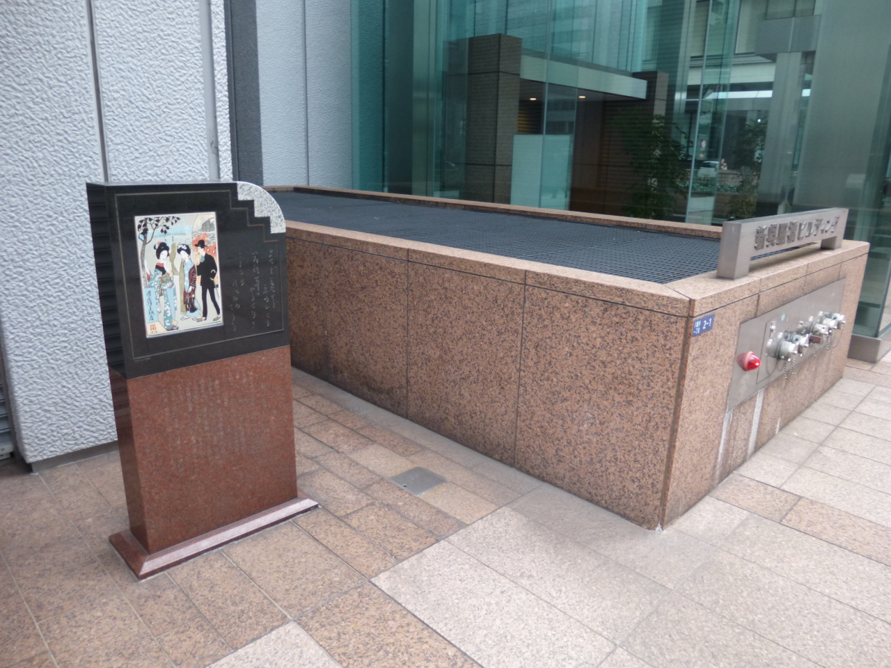 外堀通りと永代通りの交わる呉服橋交差点の北東角に建つ新呉服橋ビルという新しい高層ビルが建っています。その建物のそばに、この碑が建てられています。色鮮やかな碑なので、すぐにわかると思います。竹久夢二がここに小間物屋を開きその名が港屋でした。呉服橋の地名からもこの辺りには、粋なお店が多かったのだろうと想像つきます