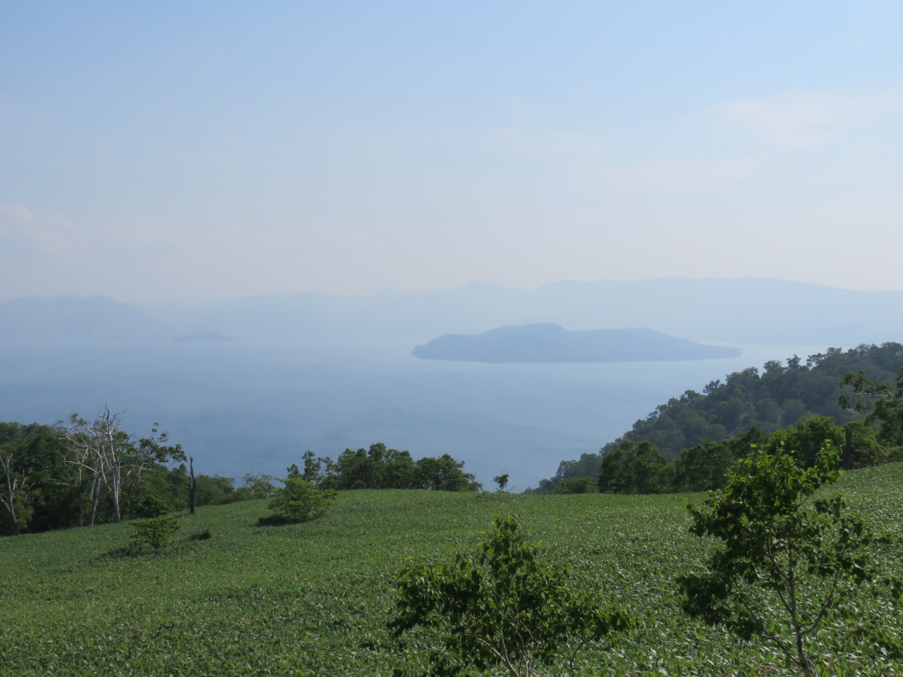 日本の湖沼では6番目の面積規模を有し、九州の阿蘇カルデラをしのぐ、日本最大の屈斜路カルデラのなかに横たわる巨大なコバルトブルーの湖でした。湖心に浮かぶ中島は、淡水湖内では日本一大きい島のようです。