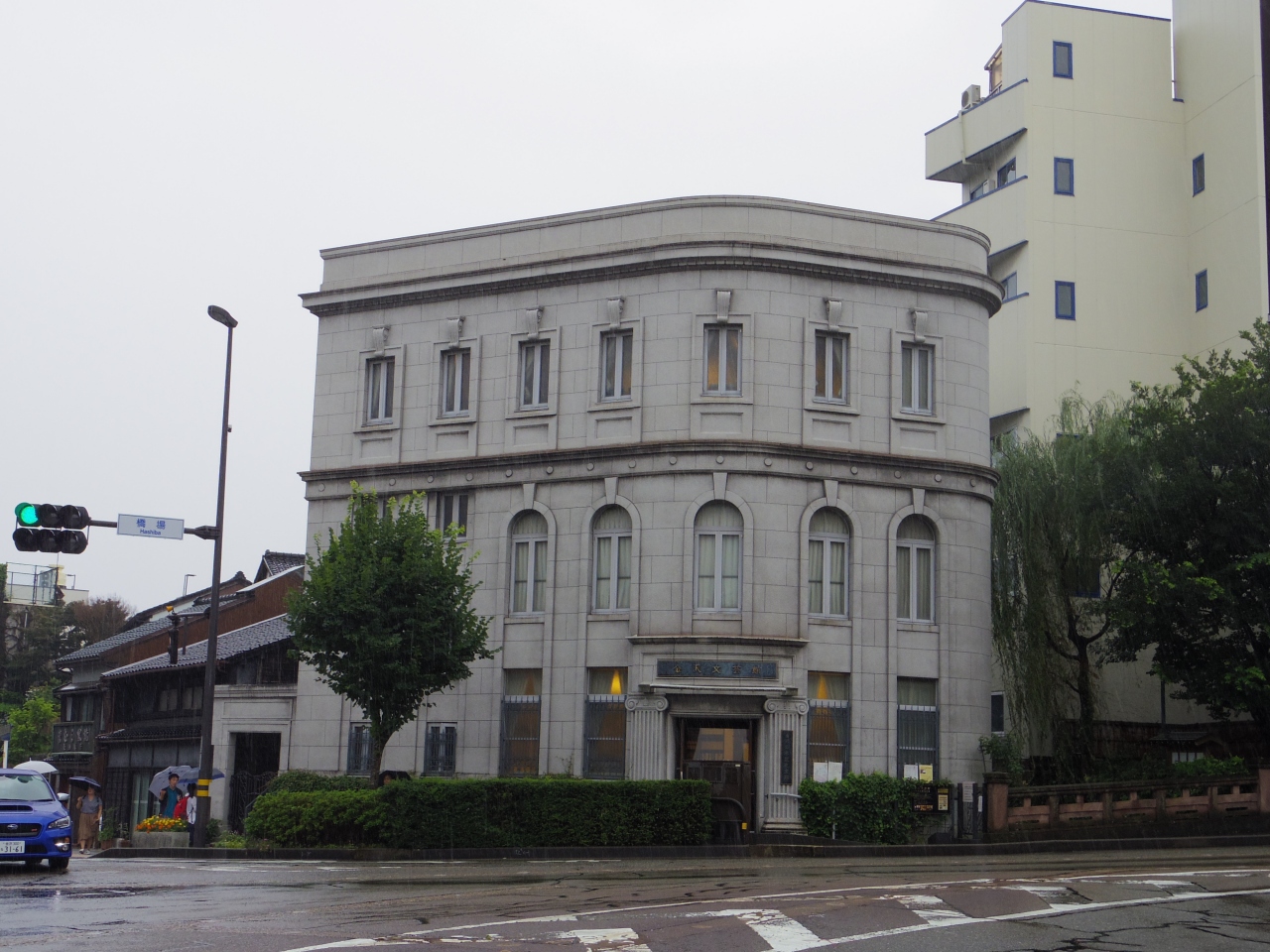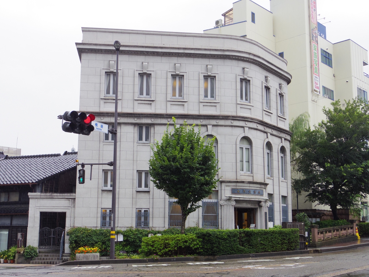 バス停を降りると、三叉路の角に趣のある建物が建っていました。