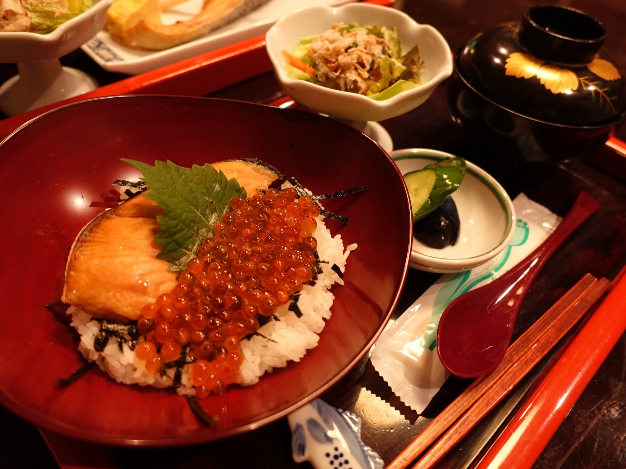 一押しはやはり鮭ばっかり丼でしょう。はらこ(いくら)と焼き鮭の丼で1600円。
