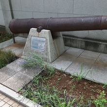 ベンチの後ろにある花壇の様な草木の生えた場所におかれてり、見過ごしそうになります。大砲自体は大したものではないですが、幕末期の大砲だと思うと当時を想像してしまいます。