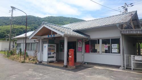 駅舎は懐かしい雰囲気のローカル駅の典型と言える雰囲気で駅の入り口にある赤くて丸い郵便ポストも懐かしい。