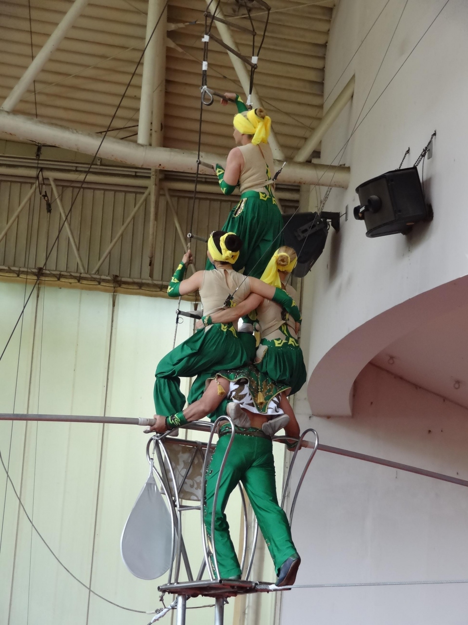 ちょうどこの博物館を訪れた日がウズベキスタン・サーカスの最終日、サーカスを以前から見たいと思っていたのでラッキーでした。午前10時~の開演までにできるだけ前のほうの座席を確保して、近くにある韓国の家でデジチムを食べました。甘辛いたれがからんだ豚肉がとてもピリッとして美味しかったです。サーカスはいろいろな曲芸が披露されましたが、やはり見ものは綱渡りです。一人だけでなく、4人も肩車してロープ上を歩くのはとてもスリル感があって見ごたえ十分でした。散策コースの奥のほうへ歩いていくとイタリアのアルベロベッロやアルプス地方の家が完璧に再現されているのには驚きました。パスタやピザ、ドイツの生ビールなど、外国旅行をしているような錯覚さえしました。
