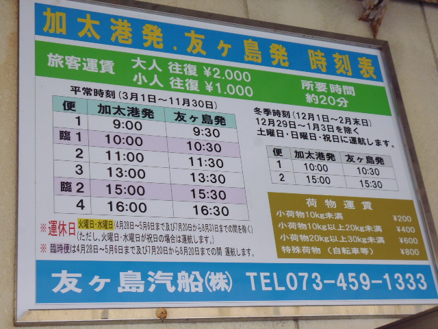 加太の港から20分で着く友ヶ島に行ってきました。片道20分で往復2000円の船は高いね。