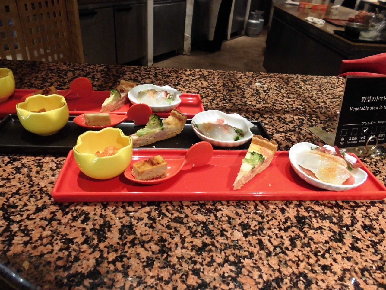 友人との宿泊で夕食と朝食をいただきました。夕食では特別なプランでホテルのレストランからそれぞれ一皿が提供されました。握りずしやタイ茶漬けなどおいしくいただきました。スタッフの方はよく気が付き料理の追加などをしてくれました。