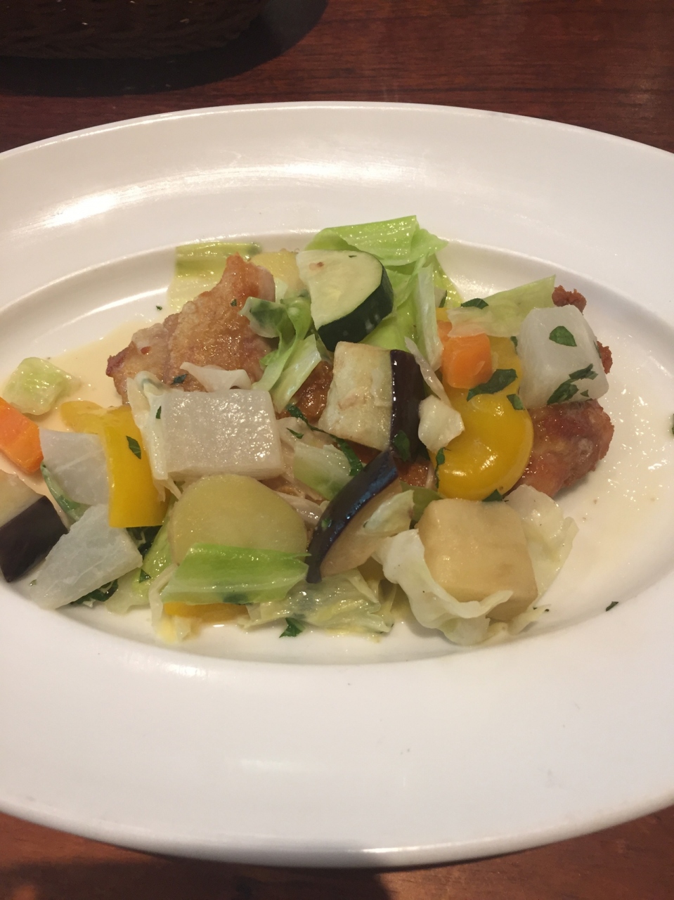 じゃがいものビシソワーズに、前菜はブリのカルパッチョのサラダ
