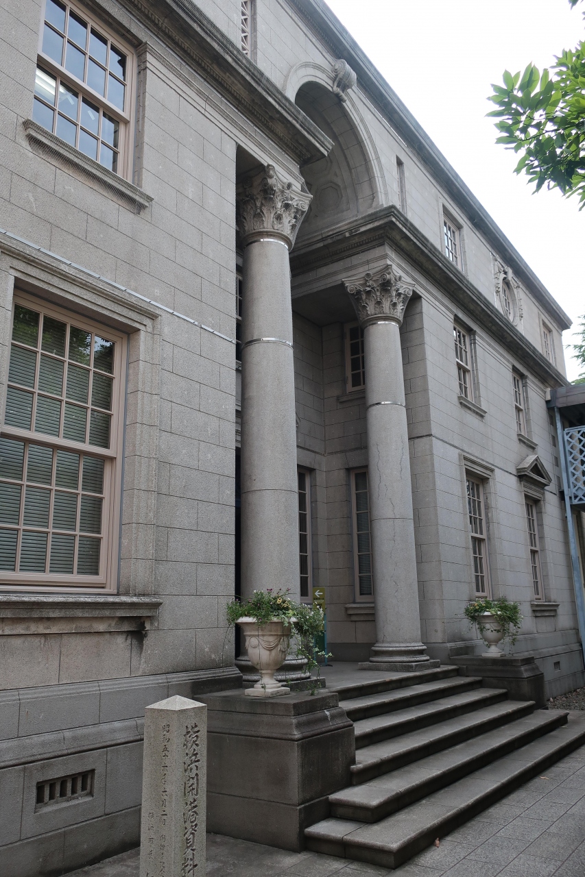 開港広場の隣に横浜開港資料館はあります。中庭を囲むように新館、奥に旧イギリス領事館であった旧館が建つ。展示室にはペリー来航時の資料や横浜開港時の古い写真等が並んでいます。展示室は有料ですが、それ以外は無料で見られ、旧館では記念ホール、記念室が見られる。そして個人的に一番の見所は日米和親条約が締結された応接所が近くに設けられた中庭にある玉楠の木。関東大震災で焼け2代目だそうですが、緑が鮮やかで歴史に残る木である。