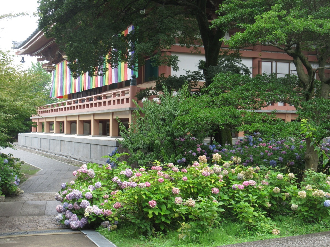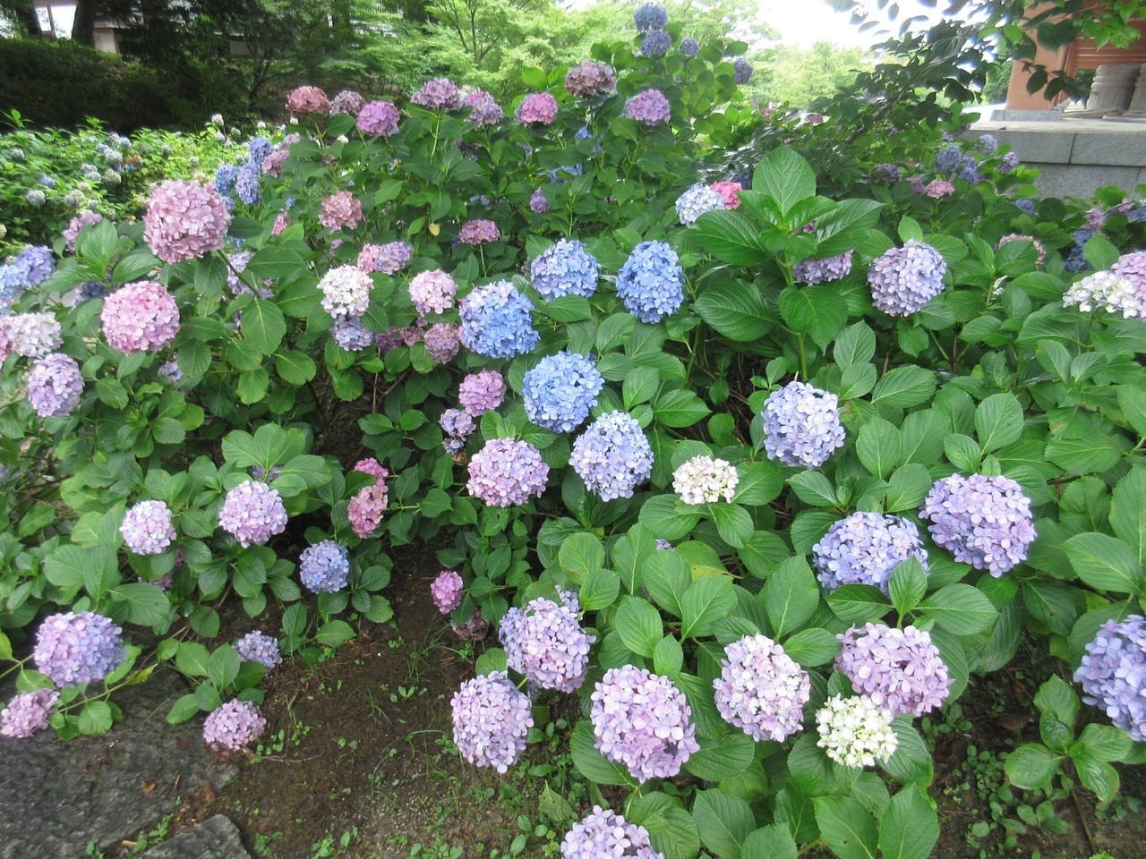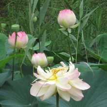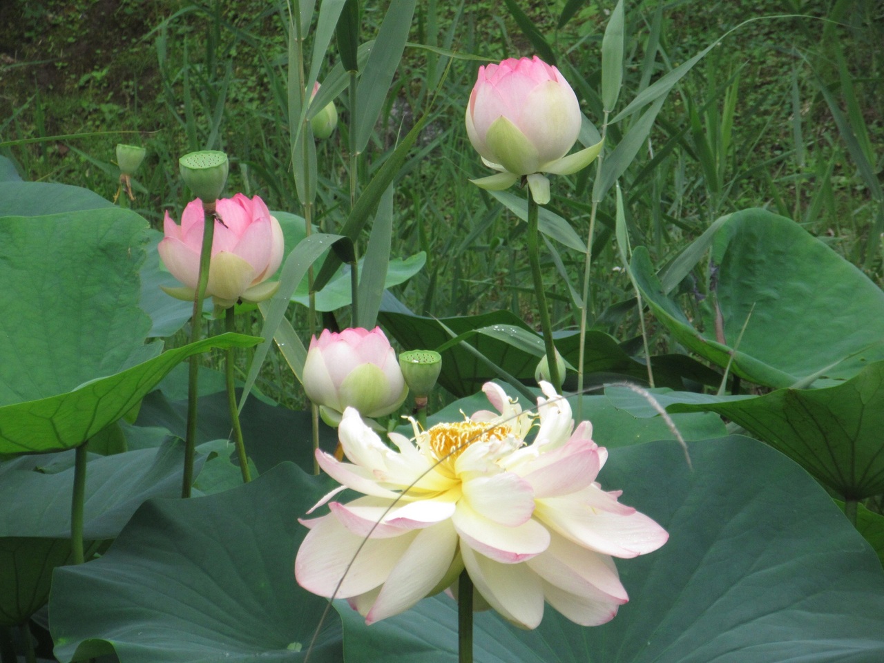 八重の蓮が池に、紫陽花も色褪始めたとは