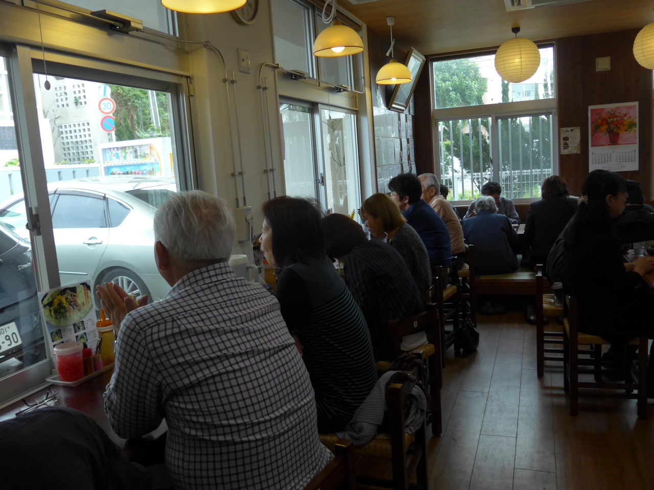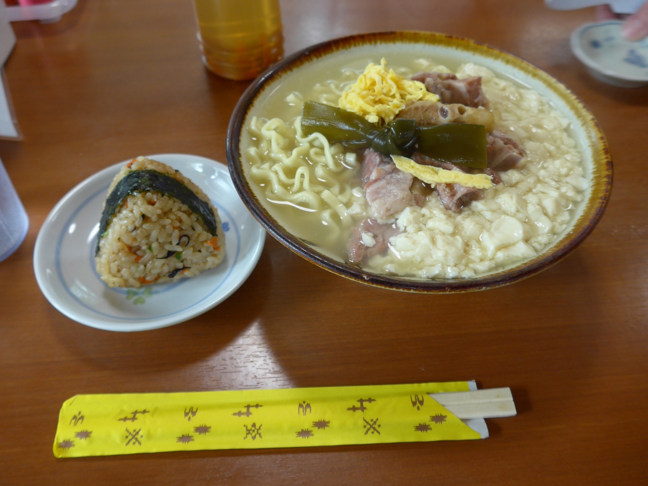 当日は駐車場が一杯でまた入り口の順番待ちボードに記入して暫く並んで順番待ちをしました。そんなに待たずに席に案内され名物の「ゆしどうふそば」と「おにぎりみそ」をオーダーしました。
