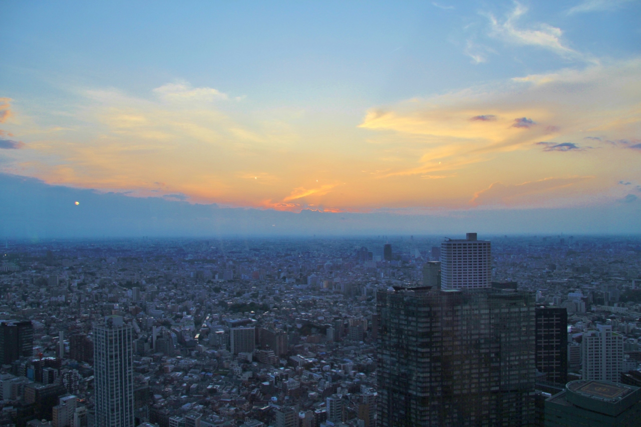 夕暮れ時に丁度新宿にいたので都庁展望台に行って来ました。相変わらず外国人観光客で大変混んでいました。地平線の雲が厚かったので思っていたほどの綺麗な夕焼けを見ることは出来ませんでしたが、悪くはなかったです。但し、富士山のシルエットが見られなかったのが残念です。