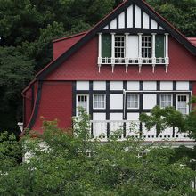 江戸東京たてもの園内に移築保存されている洋館のひとつです。外観はとっても可愛らしくて素晴らしいです。二階もお部屋は復元されているようなんですが、家具とかが少なくて当時はどうやって使われていたのかあんまりイメージできませんでした。もう少し今後充実していってくれるといいなと思います。