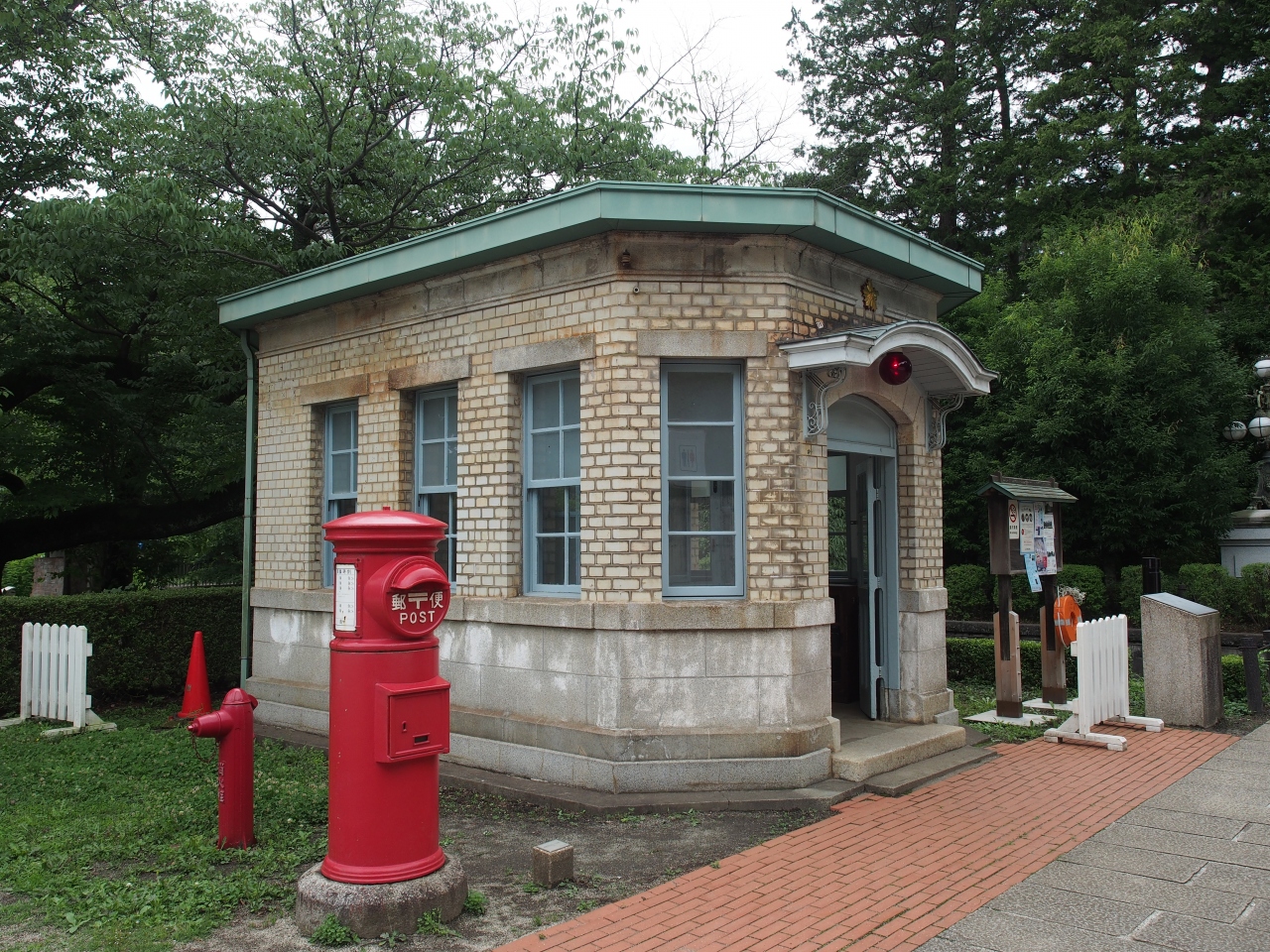江戸東京たてもの園内に移築保存されている建物のうちのひとつです。とっても小さな交番で、「警察官」ではなくて「おまわりさん」が似合いそう。中に入れますが、内部もやはり小さくて、たくさんの人が詰めかけたときはどうしたんだろうと不思議に思いました。