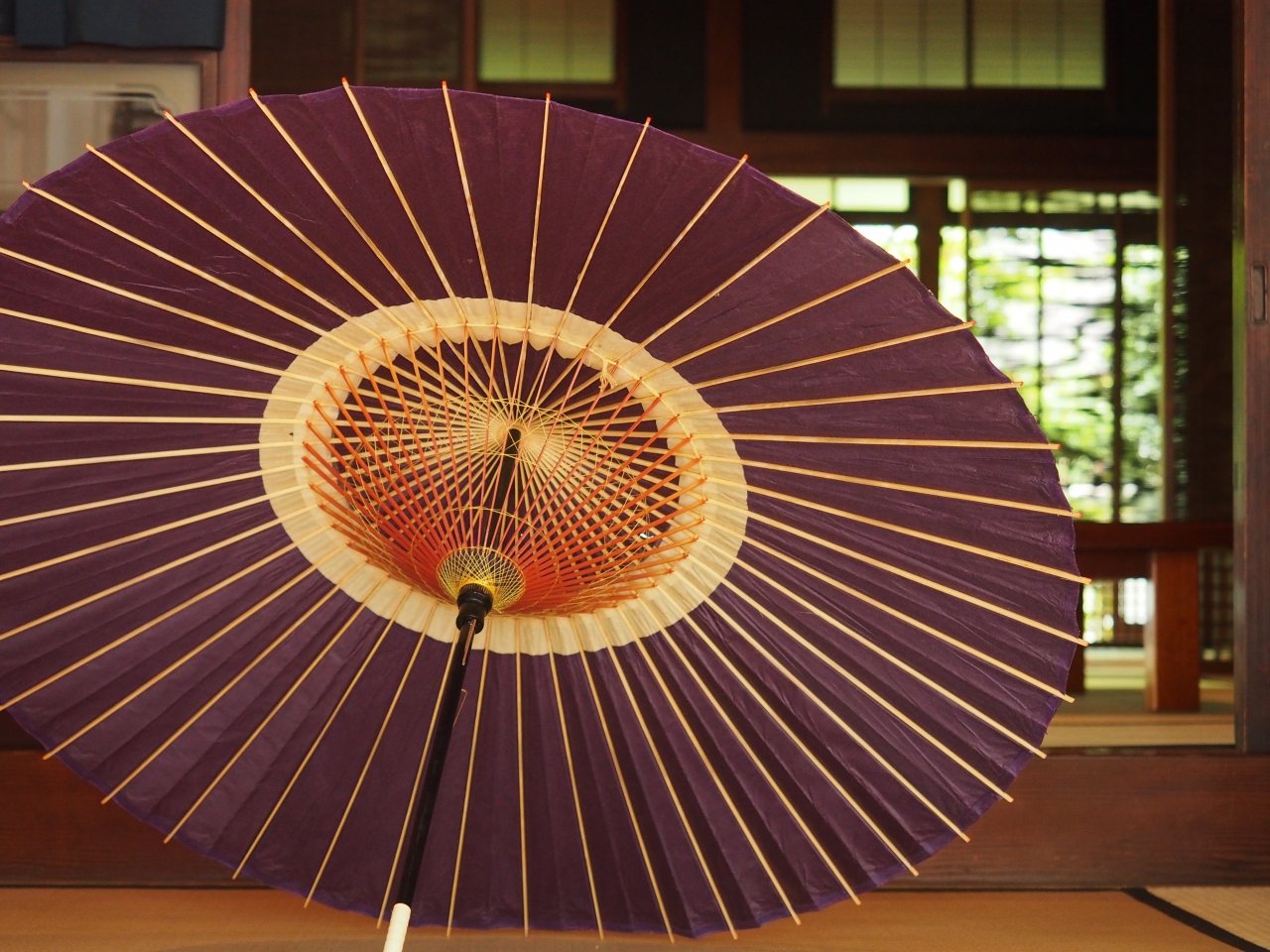中に展示されている和傘が素敵