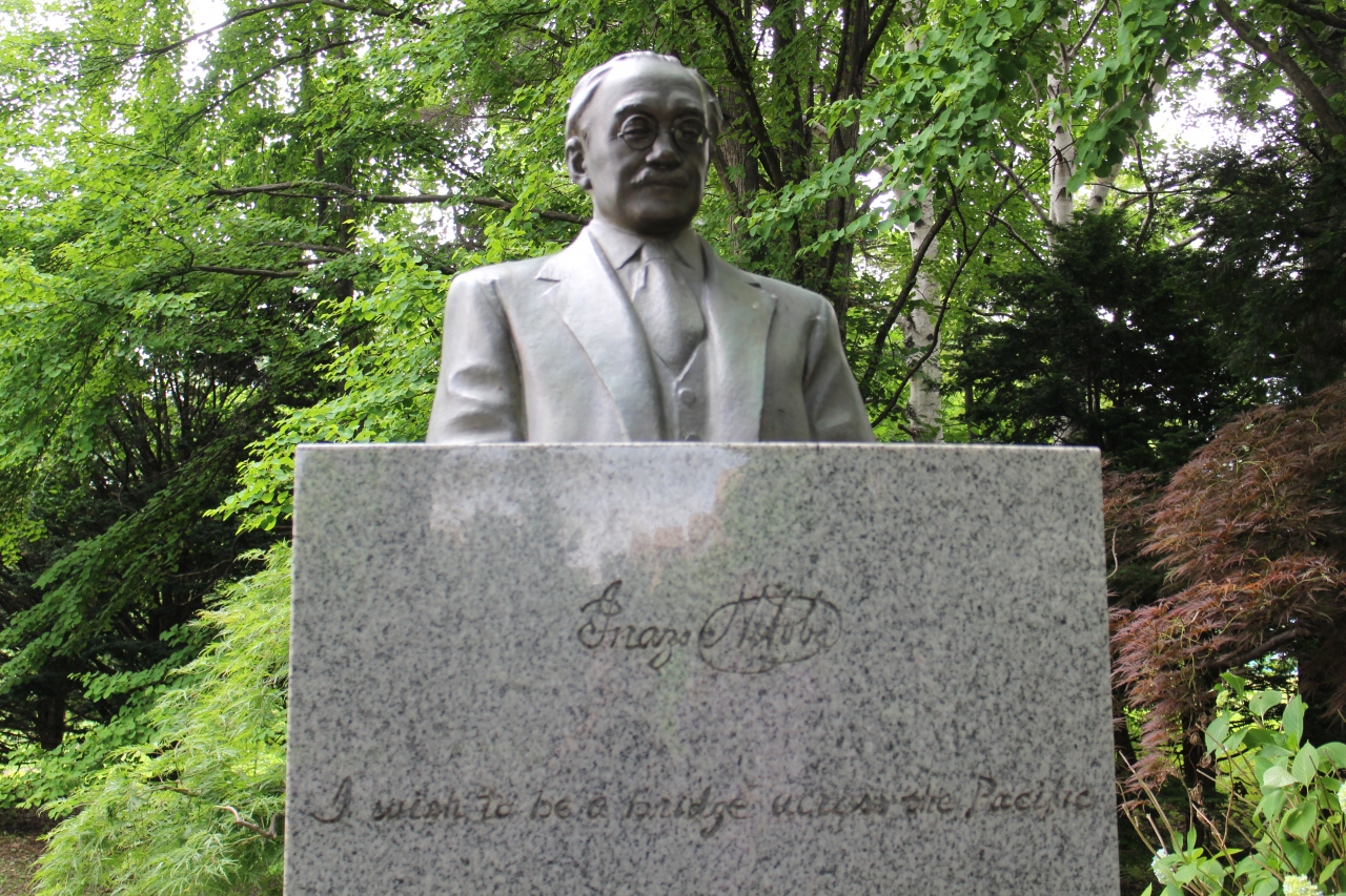 新渡戸稲造氏に同行した南鷹次郎教授が農場の風除けにするために多くのポプラを購入して持ち帰って植えたことに関係するのか 農学部の関係かポプラ並木の近く 北大花木園の入り口に胸像があります