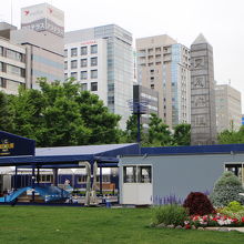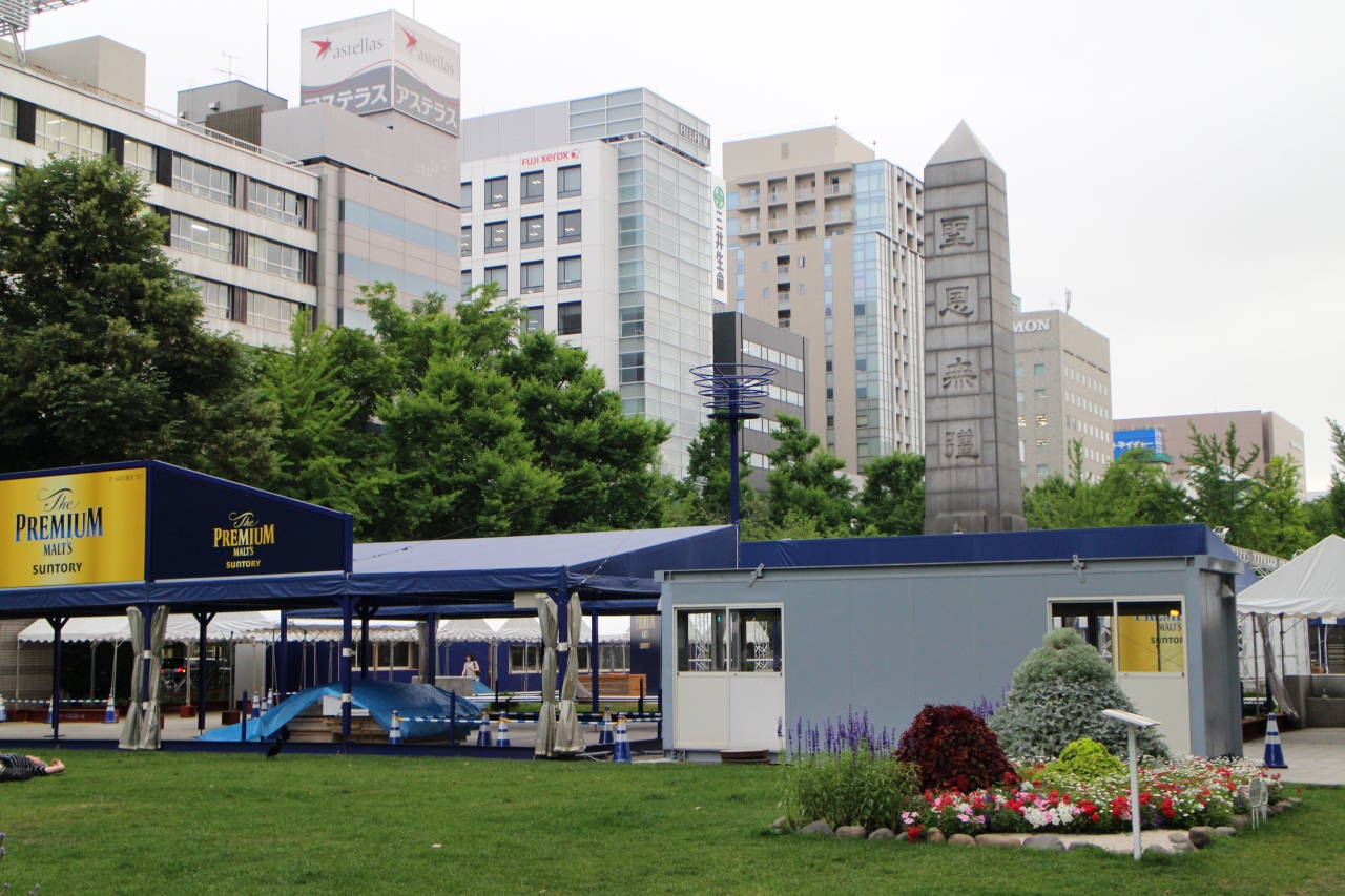 聖恩碑の四隅には水飲台、周囲には池が整備されているようだが、札幌の夏祭り 大通公園のビアガーデンの建物設置中で近くに行けませんでした