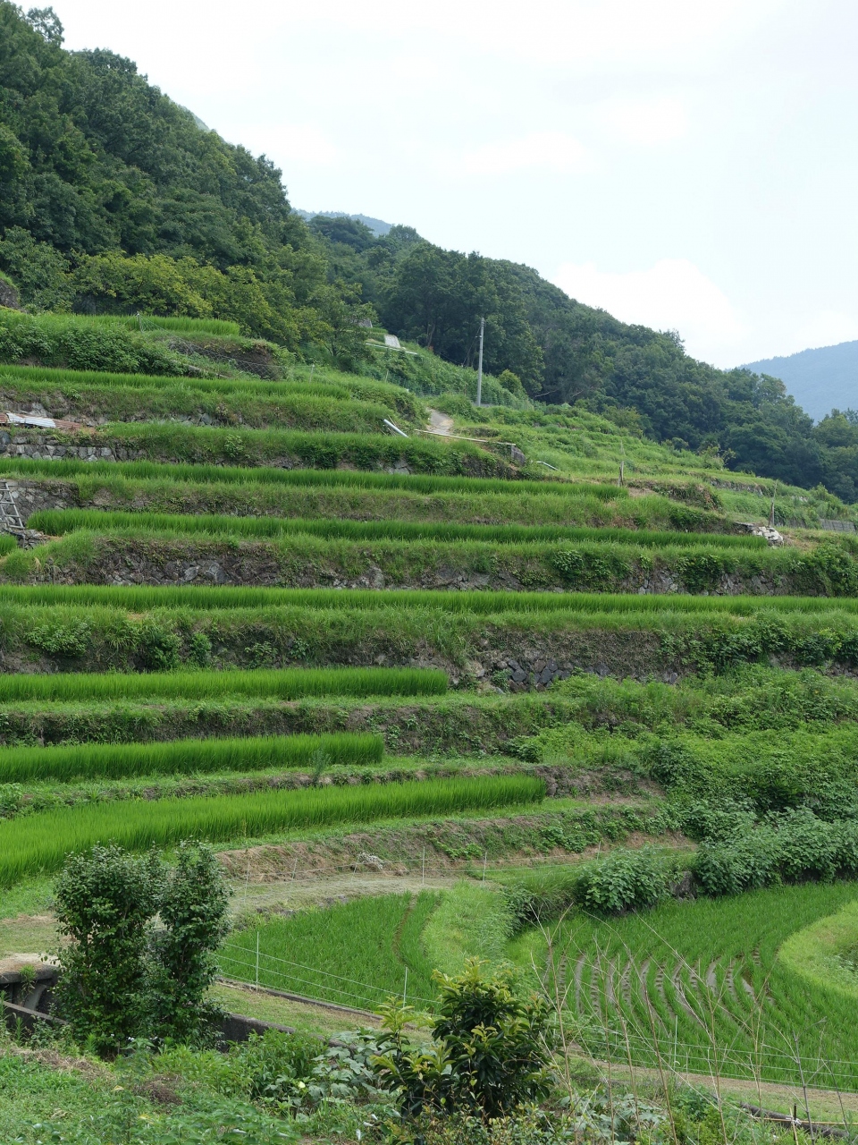 棚田は水が張られて、稲が大きくなって水が見えなくなるちょっと前がいいです。水がなくても、稲が成長して実りすぎても、美しい水面が見えないので、田植えを少し過ぎたころの夕暮れなど最高の季節に見てみたいものです。