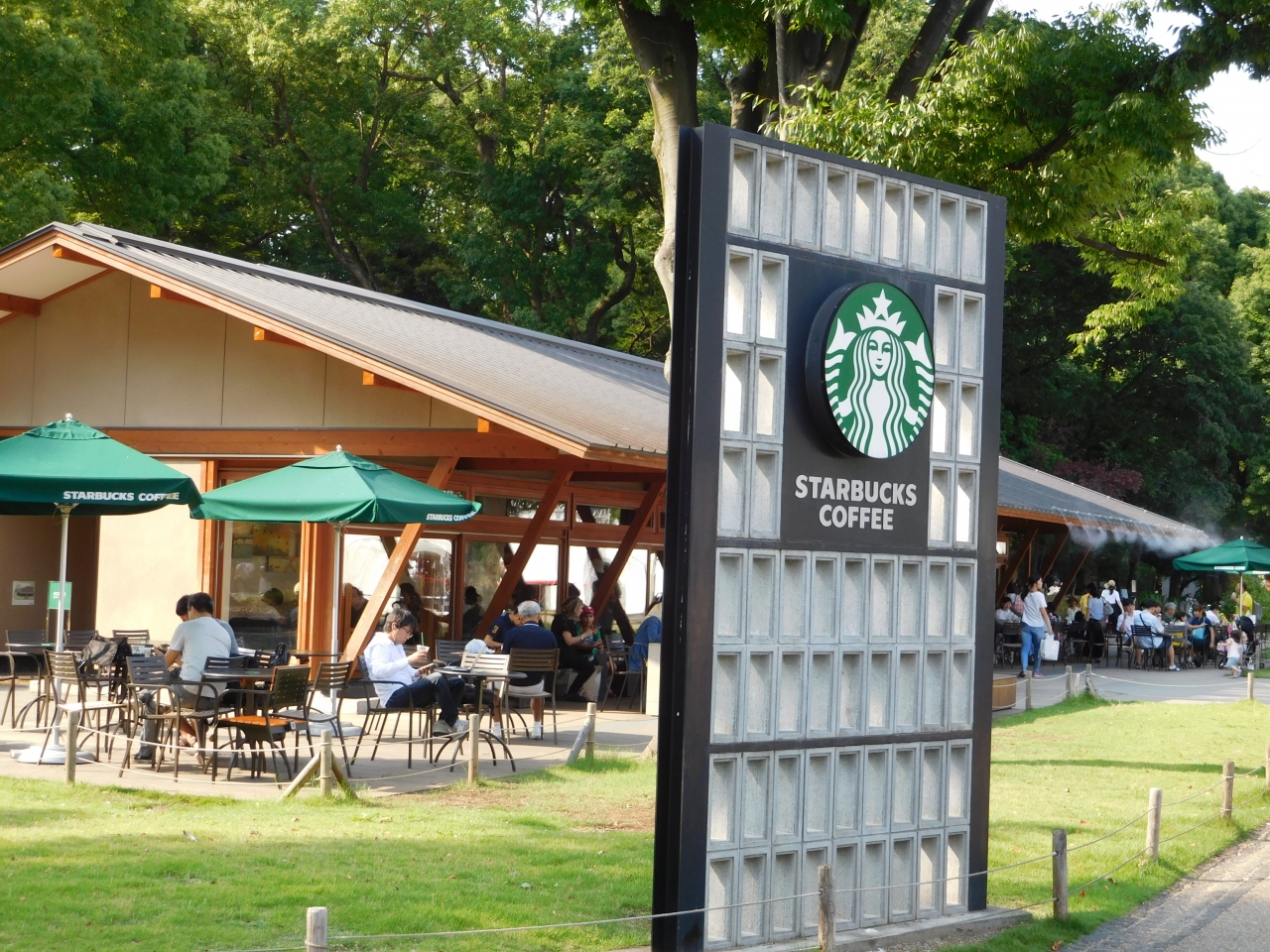 上野恩賜公園内の、上野動物園近くにあるスタバです。ロッジスタイルのおしゃれな雰囲気のお店で、テラス席も多く用意されていました。場所柄、多くの外国人も訪れて、のんびりとくつろいでいました。暑い日だったので、ミストシャワーの出ている近くの席が人気のようでした。動物園の帰りに寄るのにちょうど良い場所で、冷たいドリンクで休憩できて良かったです。