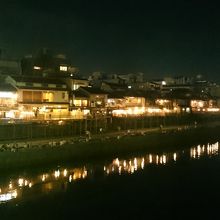 祇園祭の休憩に来たのか浴衣姿の人やら観光客やらが川沿いにずっと座って涼んでました