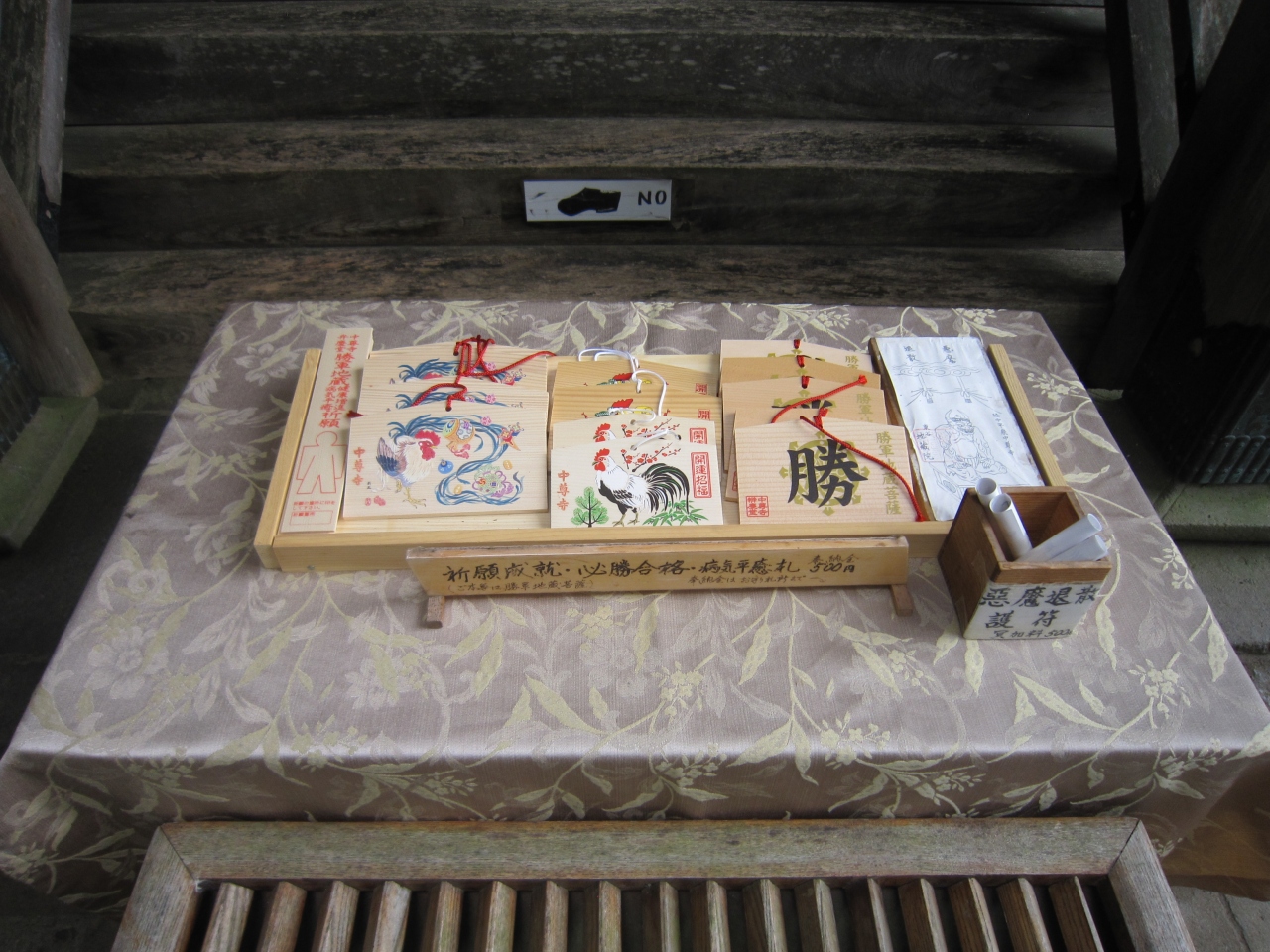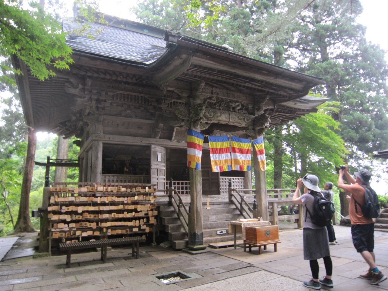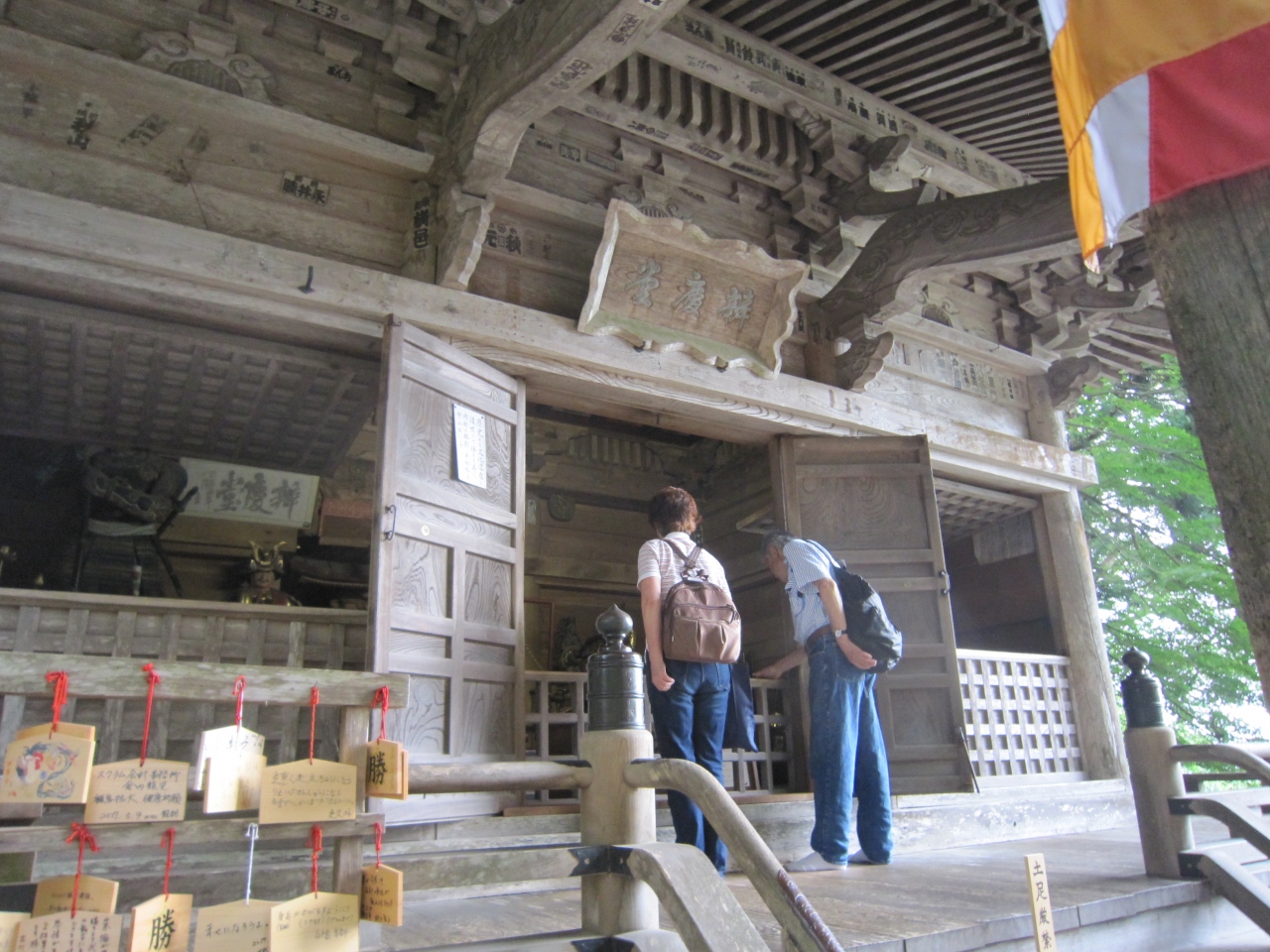月見坂の総門跡石柱を過ぎ左側に茶店があり、その横から入り、突き当たって右側奥にあります。先の東物見台の反対側からも入れます。説明板にお堂は通称弁慶堂と言い文政9年再建、本尊は勝軍地蔵菩薩、弁慶像、義経像等があると記載されていました。弁慶堂へ行く途中、弁慶に顔を入れて撮影する所があり記念に撮っていた外国人観光客がいました。弁慶堂の写真を撮る観光客も多かったです。弁慶堂には靴を脱いで階段を上り堂入口前まで行けます。そして祀られている像等を見ることが出来るようで夫婦連れが見ていました。堂入口前には行きませんでしたが弁慶像が見れたので写真を撮りました。義経像もちょっとだけ写っていました。お堂手前にはお札授与所がありますが、堂前にも絵馬等を置いていました。その中に勝軍地蔵菩薩が本尊だからでしょうか、「勝」と書かれた絵馬がありました。