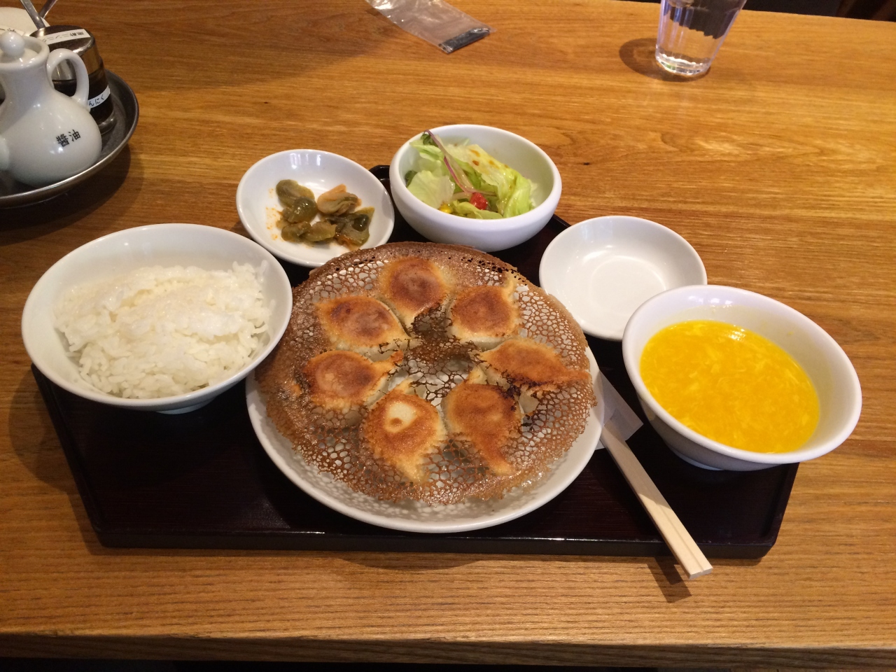 ランチ時間帯はランチメニューがあり、餃子とごはん・サラダ・スープがついたものがセットになっているものがあります。餃子はパリッとした食感で最後まで美味しくいただきました。