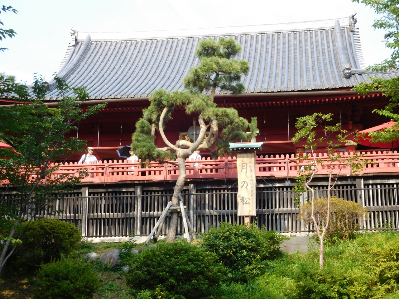 上野恩賜公園内、「寛永寺 清水観音堂」の敷地内にあります。上野動物園から、西郷隆盛像を目指して歩いている時に、ユニークな形をした松の木があるのに気付きました。すぐ横には、歌川広重 名所江戸百景「月の松」と書かれた看板が立っていて、なるほど、月の形に造られているのかと思わず感心してしまいました。ちょうど建物の手すりの高さから、屋根の下に収まるようなサイズで造られていて、見事でした。