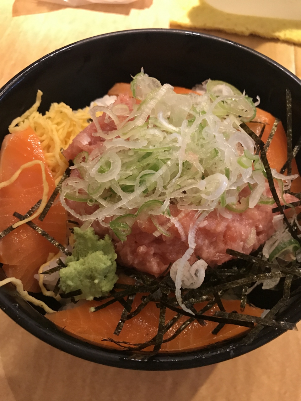 ここでびっくりするのは、その値段。ほとんどのメニューが1皿130円、、、というのは他の店でもありそうですが、海鮮丼は1つ510円から! お味噌汁もついてきます。