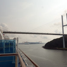 ダイヤモンド・プリンセスで長崎に寄港しました。入港の際にも出航の際にもこの橋の下を通ったわけですが。ちょっと感動したのが、出航の際、数人の市民の方々が橋の上から去って行く僕らに手を振ってくれたこと。