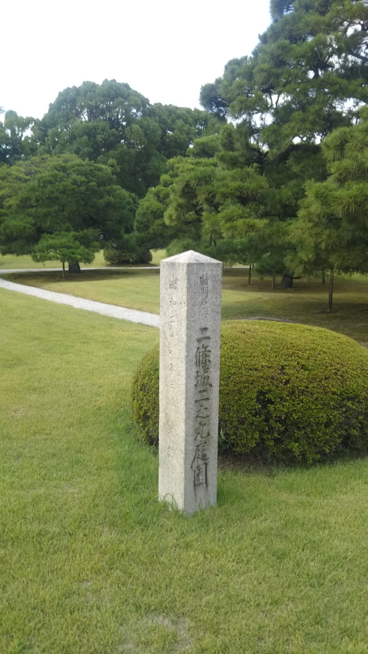 二条城二の丸にある日本庭園です。作庭は慶長年間の二条城創建の時とされ、後日後水尾天皇行幸の際に一部改修されています。書院造庭園である二の丸庭園は神仙蓬莱の世界を表した庭園といわれ、池を中心として築山や樹木が植えられています。小ぢんまりとはしていますが、緑の木々が生い茂り、池とよく合います。
