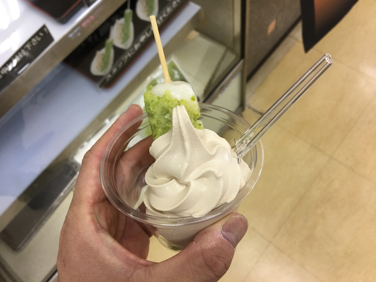 東京から仙台戻る途中に立ち寄ったサービスエリアで見つけたスイーツ。福島名物のカフェオレソフトと宮城名物のずんだ団子をむりやり合体させた一品です。どんなもんかと思いながら好奇心で買ってみましたが。いや、クセになる何かがあります。どっちも美味しくて、でも1+1=3になるような化学反応もなく、かといって互いの良さを打ち消してしまうこともない、そんなとこです。