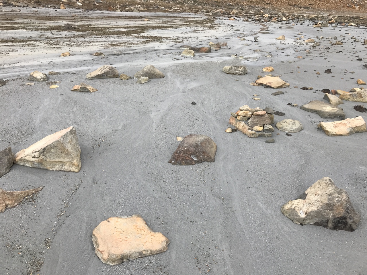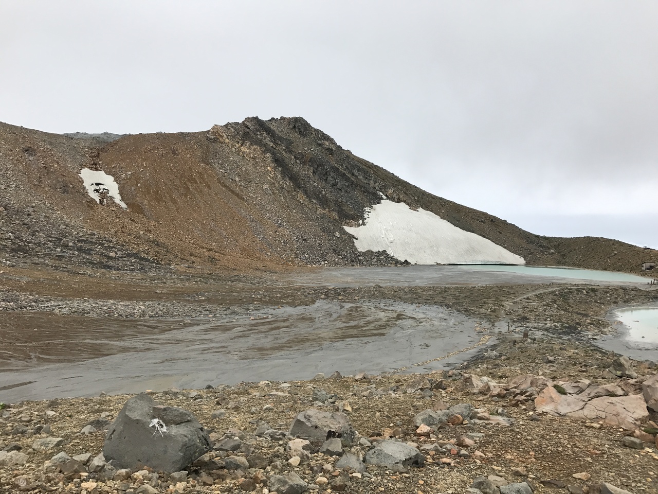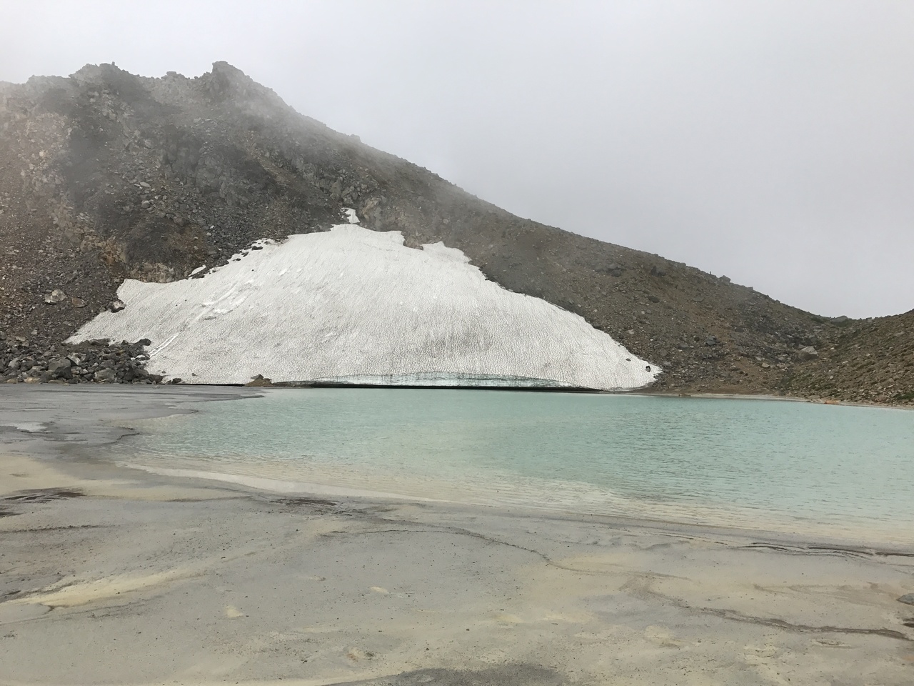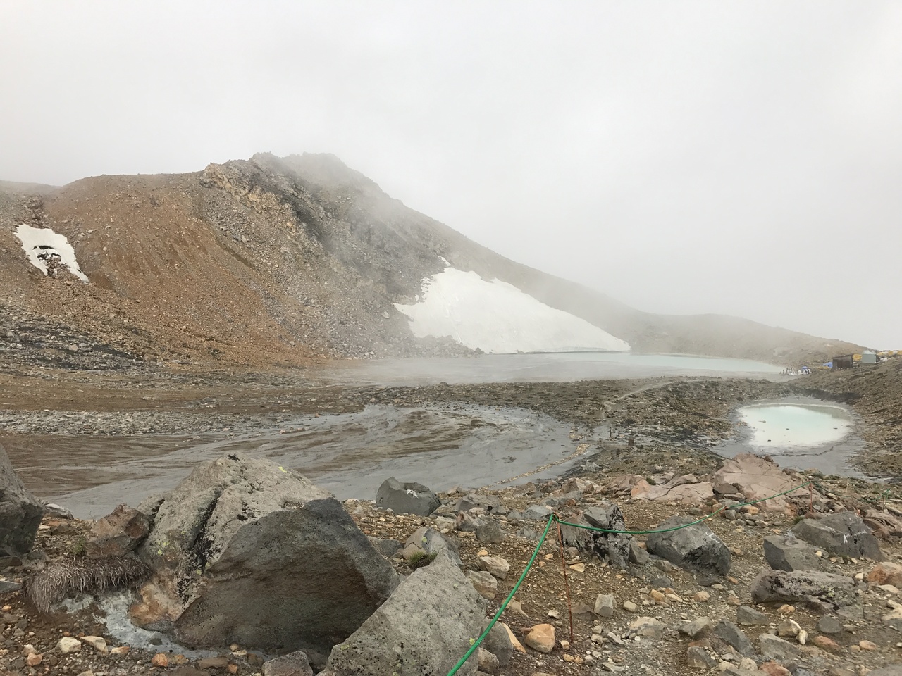 噴火があったとは思えない程、静寂。しかし、池の手前からは入山規制があり、硫黄臭、生々しい火山灰が降り積もっていた。
