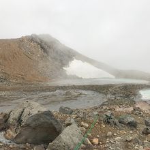 日本最高位の2905mにある火口跡の二の池は、剣ヶ峰側斜面には池の淵まで雪が残っていて、コバルトブルーの神秘的な池だった。