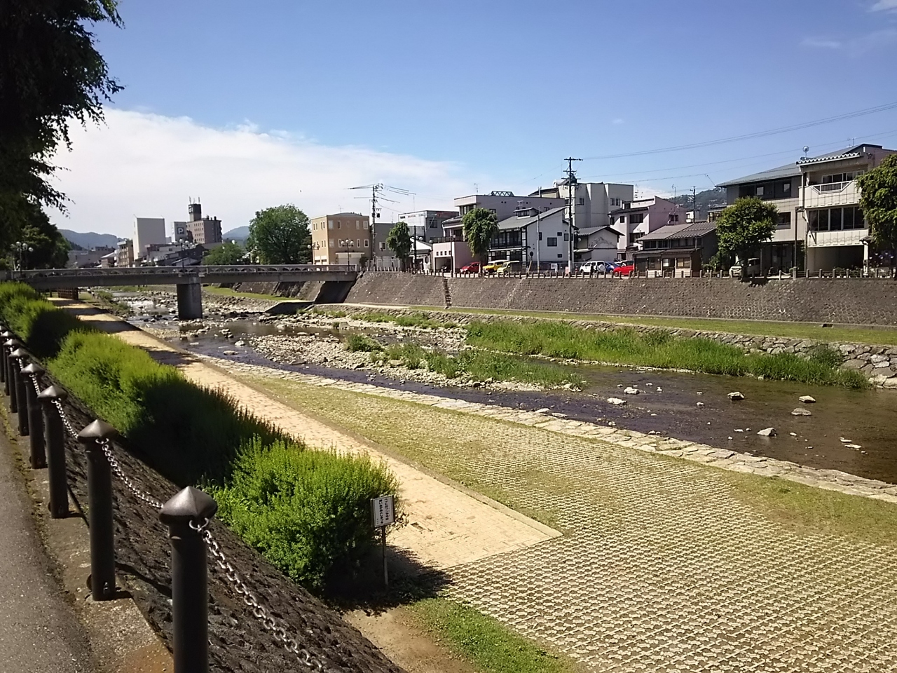 飛騨の高山市内を流れる宮川は、神通川の岐阜県域での名称で、高山市内の真ん中を流れています。宮川沿いの宮川朝市は、高山の観光名物になっています。