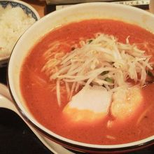 以外ともっちりとした麺でスープがよく絡む。スープは鶏白湯に特製豆板醤をブレンドしているとのことですが、
