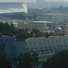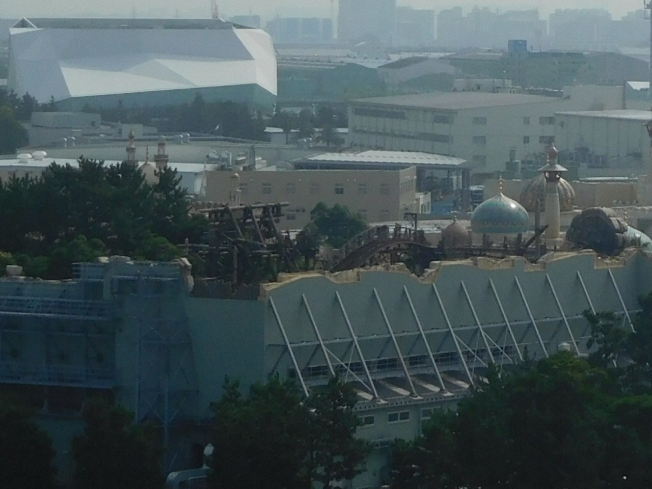 今回オフィシャルホテルのシェラトンに宿泊した際、お部屋のベランダからレイジング・スピリッツの裏側が見えました。