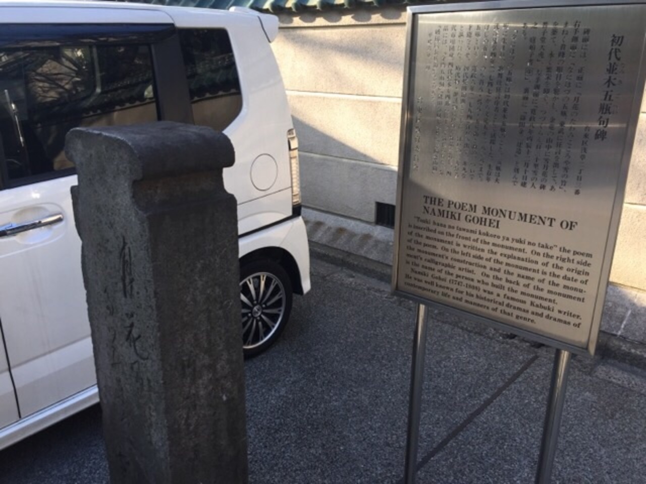 作品としては、金門五山桐や隅田春奴七容性などがありますが、浅草らしい芸能関連の句碑です。