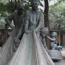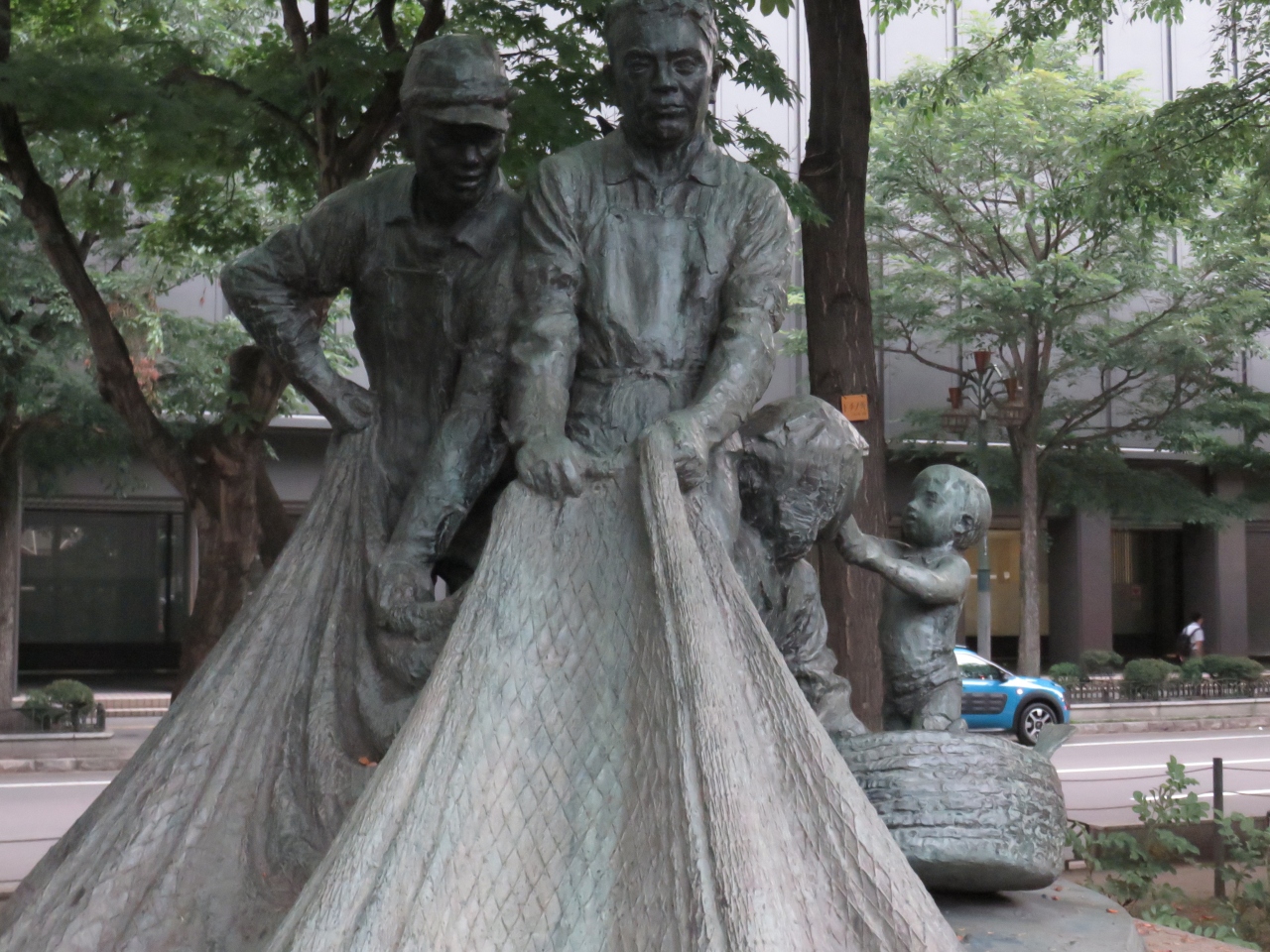 北海道漁協婦人部連絡協議会が創立10周年と北海道100年を祝って、昭和44年(1969)5月9日に建立したこの像も漁業の特徴がよくでた像で印象に残った