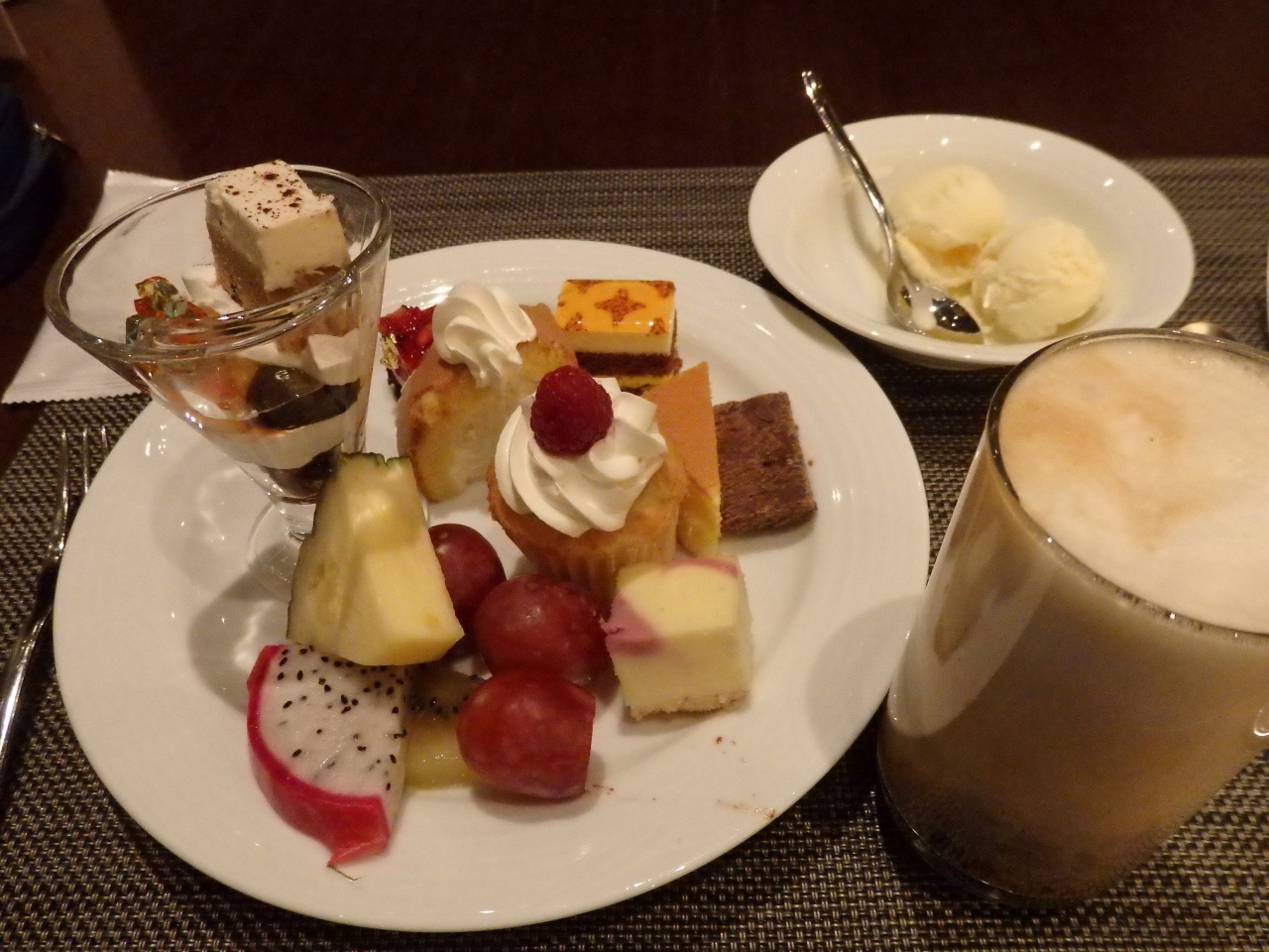 料理の品数はそれほど多くありませんし、これと言った目玉もありません。デザートのフルーツが驚くほどイマイチ。特にブドウは砂を噛んでいるようでビックリ(苦笑)。スタッフが少ないのかコーヒー、紅茶も完全セルフです。