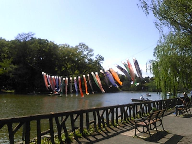 近くによったので、公園の周りをぐるりとサイクリングしました。ゴールデンウィークだったので、上の池では鯉のぼりが気持ち良さそうに泳いでおり、ボートが多く出ていました。