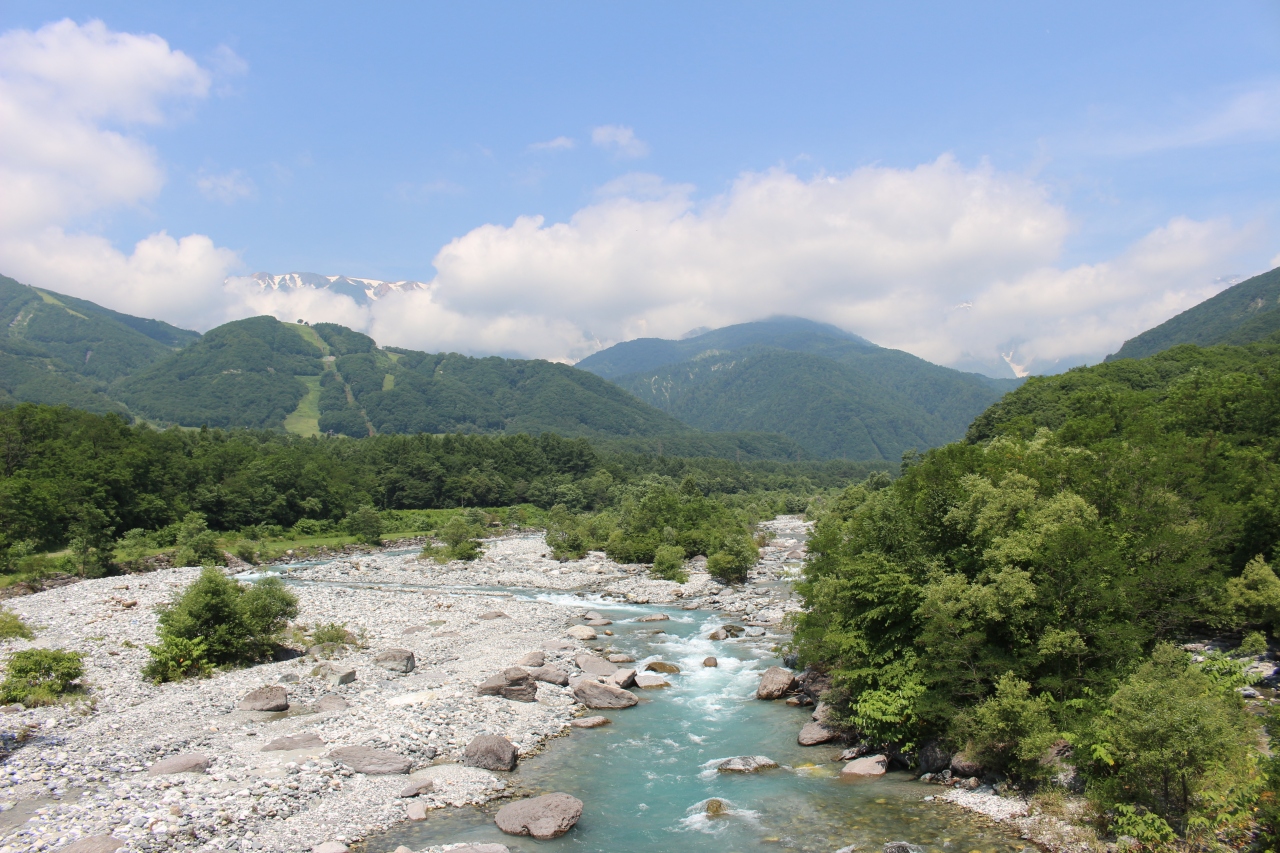 白馬三山が見える景勝地の1つです。下界は晴れていましたが、白馬の山々は雲に隠れてみることができませんでした。やはり夏に見えるのは稀のようです。でも、白馬に来たなーと思える場所なので、どうしても足が向いてしまいます。
