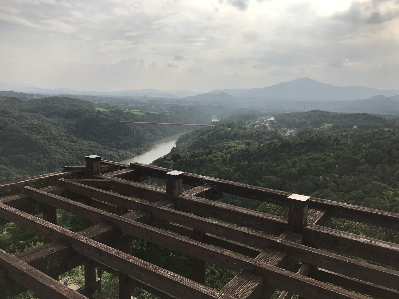 天守展望台からの眺望は、木曽川の流れや恵那山を眺め、360度の素晴らしい風景であった。